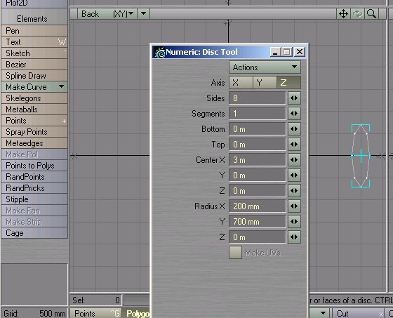 1. Open LW modeler and create a disk with eight sides, as shown in the numeric panel.