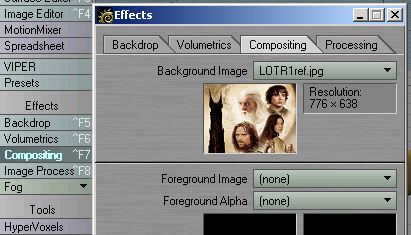 18. Lastly go to SCENE/Compositing and in Effects select the same picture that we used as reflection map as background image. The result will be the final image at the top of the page.