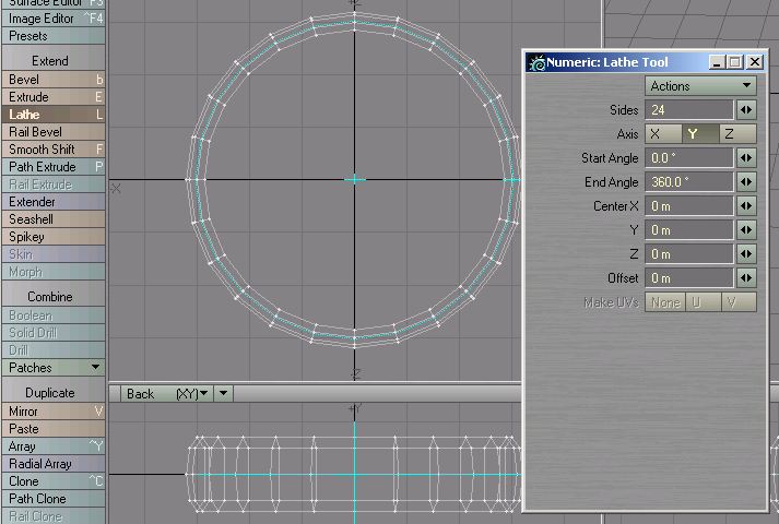 3. Go to Polygon Mode, Multiply/Lathe and make sure that your numeric panel is like mine. There's your ring.