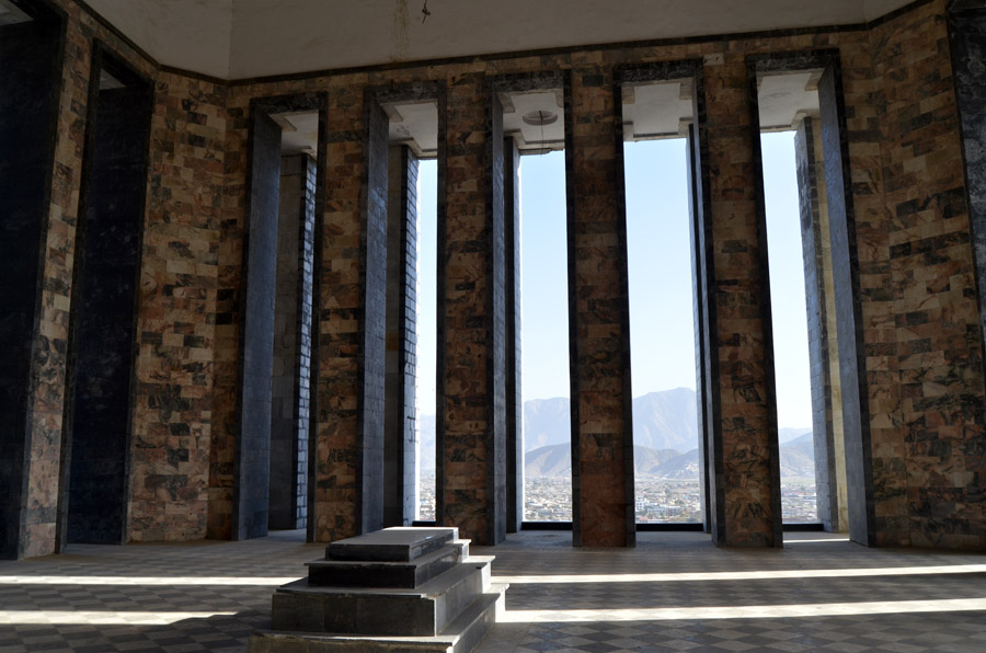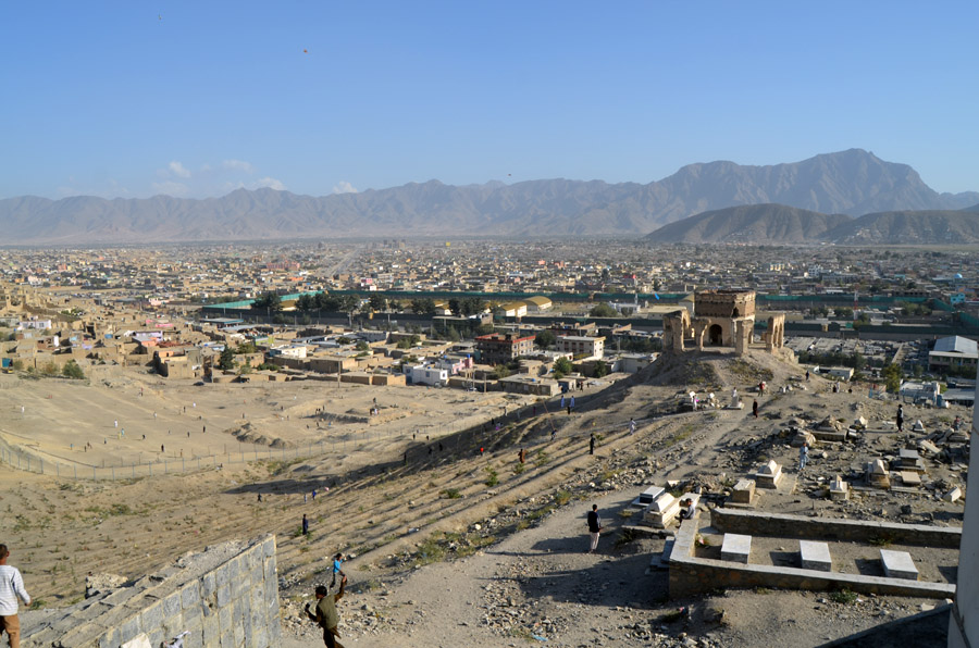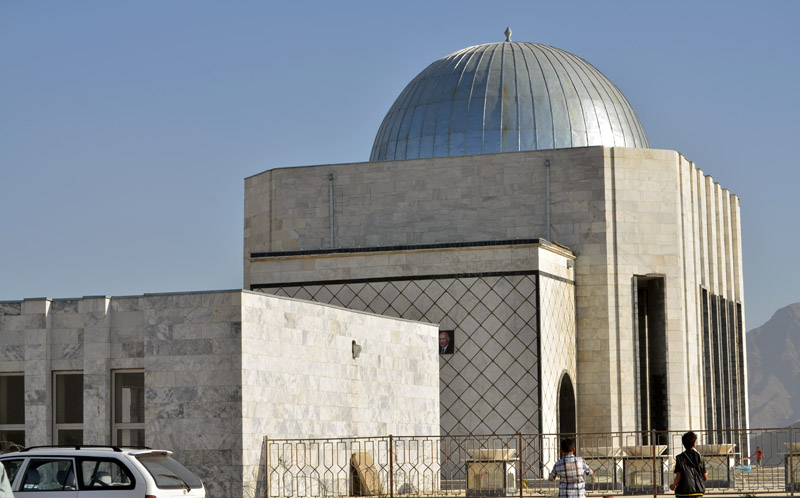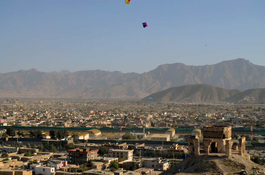 Watching the kites fly at the Teppe Maranjan, the oldest continually inhabited part of Kabul, next to the Mausoleum of Nadir Shah, was one of my intended sights for Kabul. From here steps lead downhill past more graves to the heavily damaged tomb of Sultan Mohammed Telai, Nadir Shah's great-great grandfather, visible in the next picture.. |