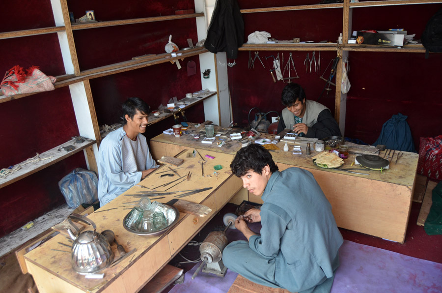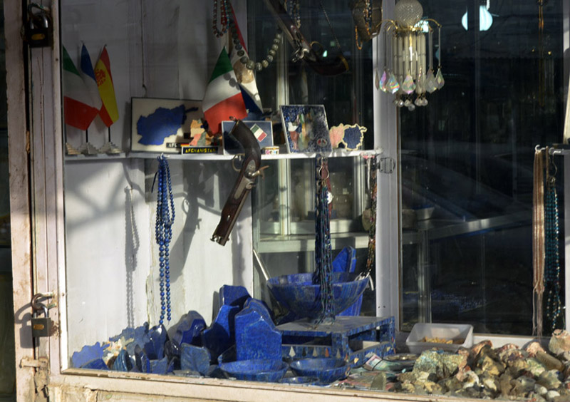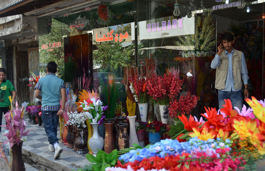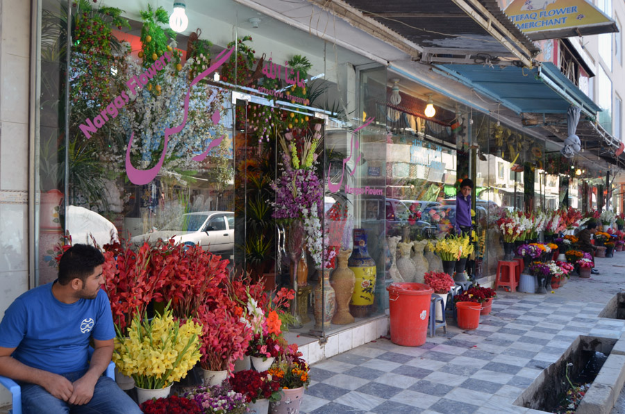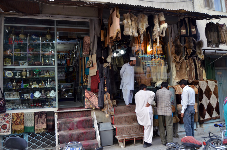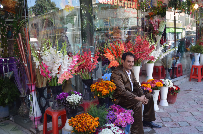 Near the roundabout, where you find M. Shah's English/Foreign language book store, crossing the street toward the military barricade, 50 meters ahead, on your right hand you will see the entrance (or exit, depending how you look at it) of Chicken street. No chickens there, if there were ever, but quite a few traders who sell antiques, souvenirs, lapis lazuli, furs, and jewelry. There are also lapidary shops that cut and polish stones and make jewelry. Haggle for everything, asking prices will always be high. Not much too it all, other than that, and after a cross street, it now is called Flower Street, and you can immediately see why. They are one of the sources for wedding decoration. |