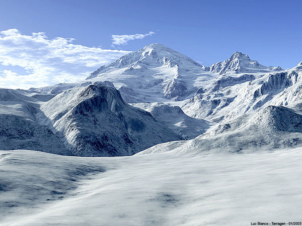 work accomplished with Terragen, a freely downloadable 3D landscape generator |
