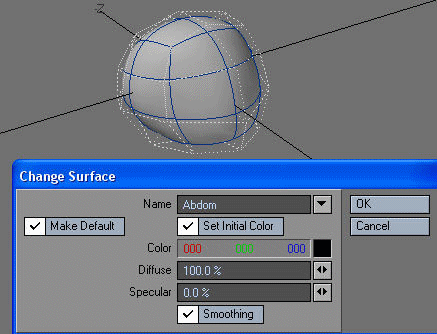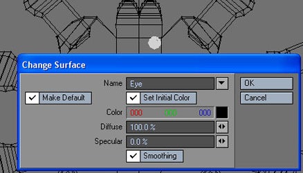 58. Hit < q > and change the surface name to 'Eye" and give it color and smoothness