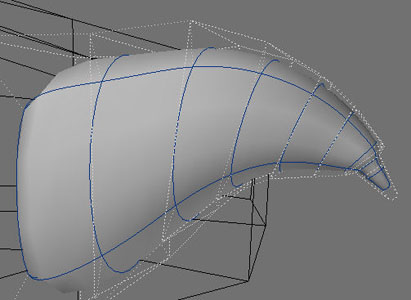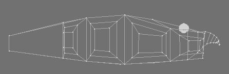 23. In the top view, point edit the shape until it looks something like this. I have the forebody in the background layer, just for scale.