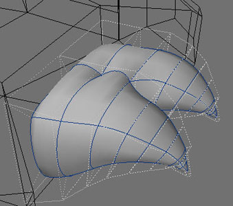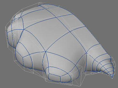 4. Hit < Tab > to see the Subdivision Surface shape. You can reshape or refine your model right from here with 'Symmetry' selected and by grabbing thevertices with < Ctrl-t >. Same as your point editing in the polygon mode.
