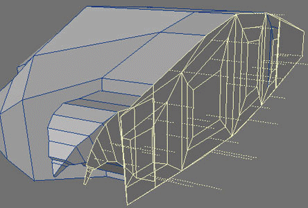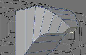 41. Slide the fang a little bit away from the forebody front edge, and select the highlighted polygons