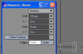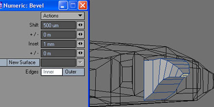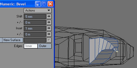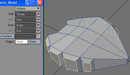 25. Select the little end polygon and do the two bevel processes < b > < n >, shown in these two illustrations