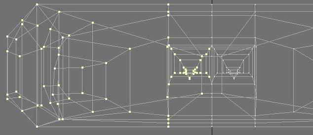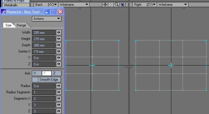 15. Hit < a > and it will center the box in the viewports. Now hit 'Symmetry' and then < Ctrl-t > and move pointsuntil you have a shape resembling this.