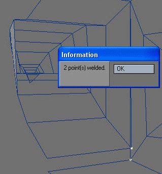 26. Select and weld < Ctrl-w > the two points pairs, as shown, together. Repeat for the lower pair.