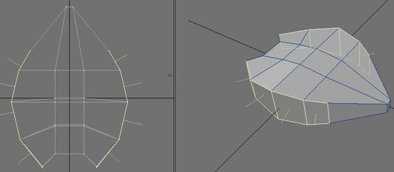 37. Hit < Space > go to the point mode. In the front (or back) view, select all of the points on one side as shown