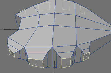 17. Hit <Tab> again, so that you can select (in the polygon mode) all of the squares (8), as shown. Spiders have eight legs, so we will have to have eight leg attachment points