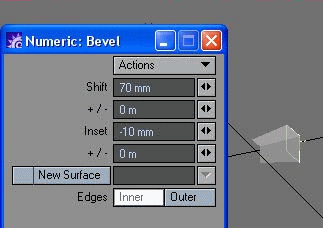 7. Select the square and go to Bevel < b > and < n >. The latter to bring up the numerical panel. Enter the values you see here.