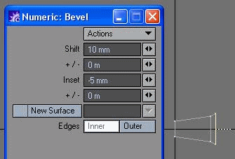 18. Now bevel (I'll say this for the last time - you know this) - Hit < b > and < n > and you'll notice that all of the selected surfaces are beveling.
