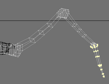 12. The finished leg: Point edited in a few places for the irregular look. You can see how it is bent in a few places. Select a pair of points, and then hit < t > and create the little bends in the sections.