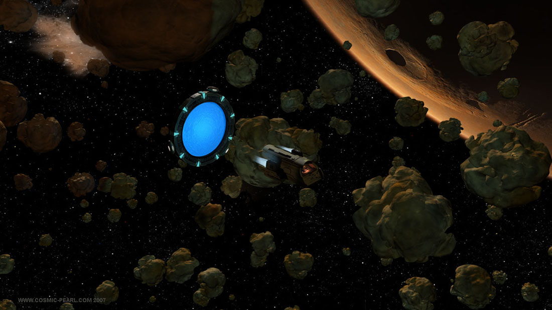 The Hidden Stargate Rendered in LW 9.2 x64 - Monte Carlo Radiosity, 1h30m, E6600. Hypervoxel Asteroids. Planet in Terragen from begann.de |