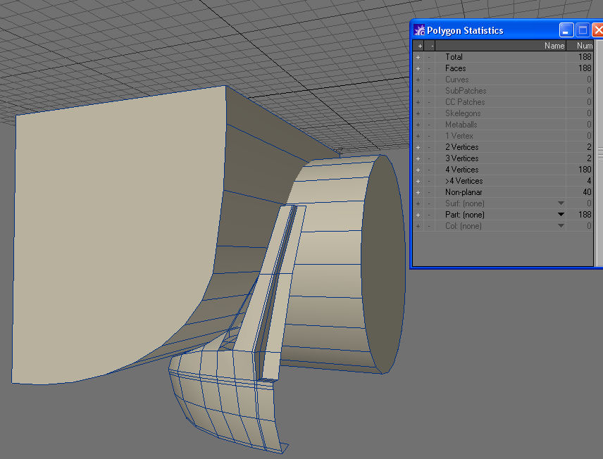 | The whole project, at least for me, was very difficult. Here you see the two cuts I made in a disk that had two segments, when I made the Boolean subtractions. This is building the front armor. |