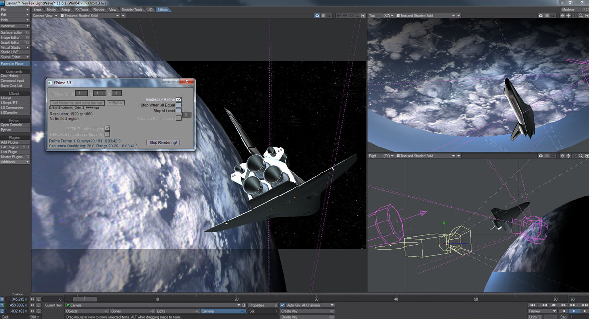 Here you can see the Lightwave render set-up, in case that might interest you. The model I did some time back, the image mapped to the sphere is a NASA ISS image