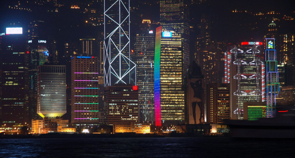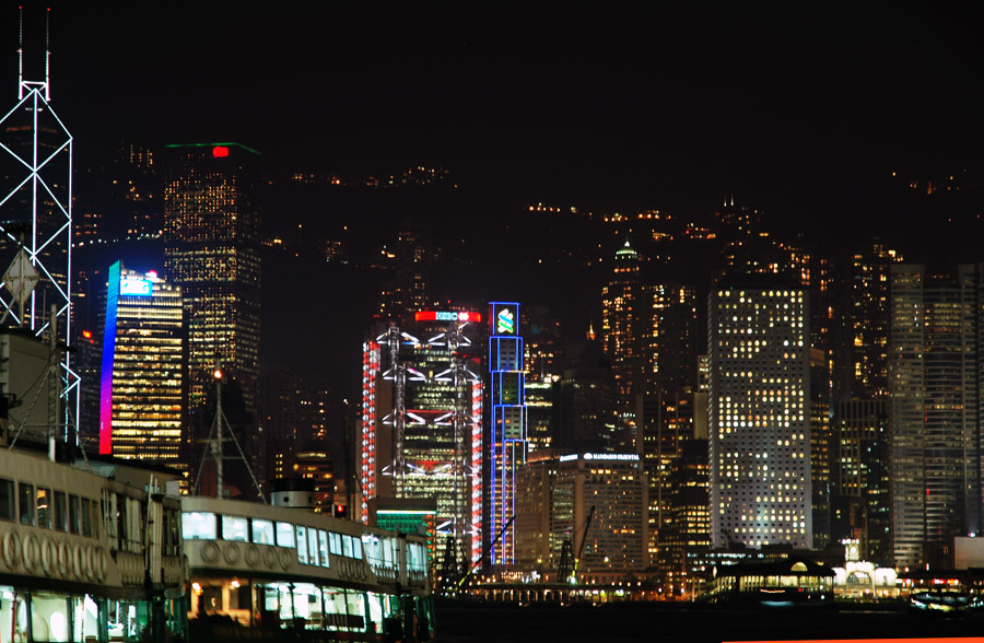 That night, maybe the next, we were out taking night shots of HK from the Kowloon Harbor area |
