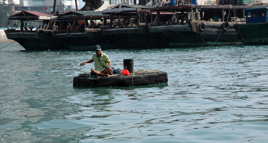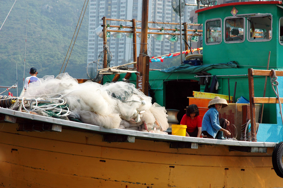No junks no mo'. Now it's motor yachts, where rich Chinese show their Western friends the old harbor. |