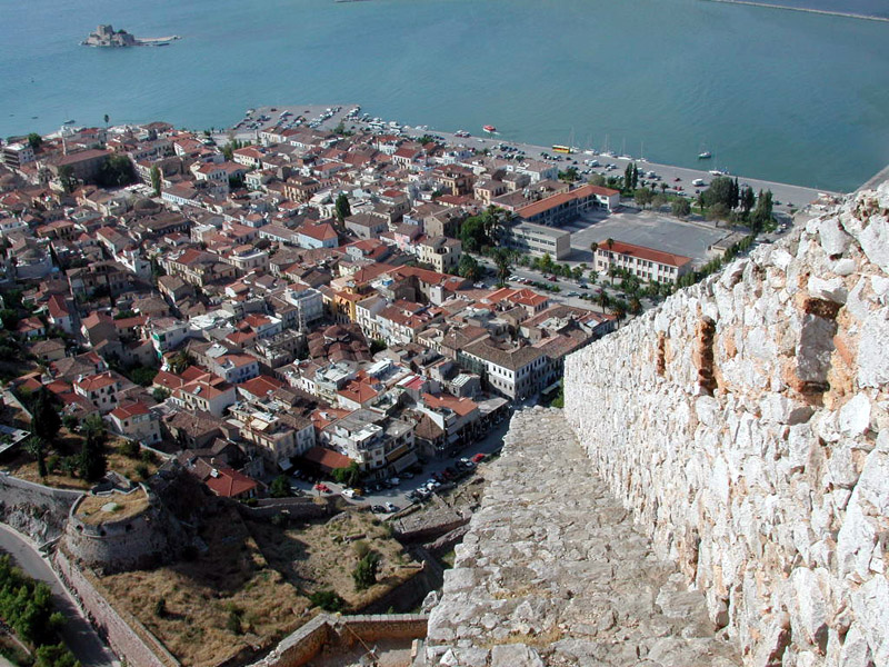 I dared this only twice. I have almost no fear of heights, and went out on this crumbling wall, a long way above the city, right to the end of it. Knees do shake a bit, by that time. There is nothing below to catch you other than rock. |