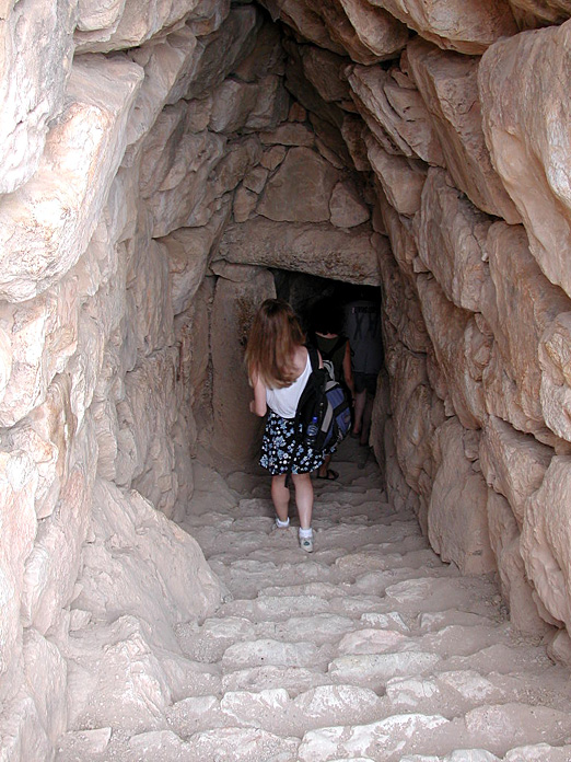 | Going deep into one of the tunnels that the ancient occupants had chiseled into the rock. |