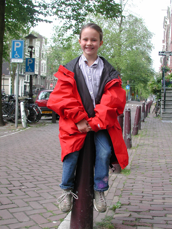 | A little neighbor in the guesthouse who wanted to do pull-ups with me. I was doing them | on scaffolding outside the guesthouse, and I gave her a hand and she really did them. |