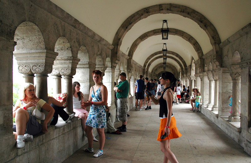 Catty little girls at a favorite tourist viewing site, the castlewall |
