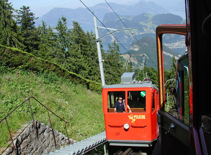 I aways wanted to ride one of these things, called a funicular, and did it years later again in Hong Kong, and then again in 2015 in Bogota. This was my trip back down, off Mt Pilatus, back to the train station to Luzern. |