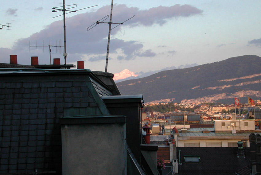 And as I looked out of the dormer of my room, I saw, at sunset, the lovely Mt. Blanc, that I had just left a day earlier. |