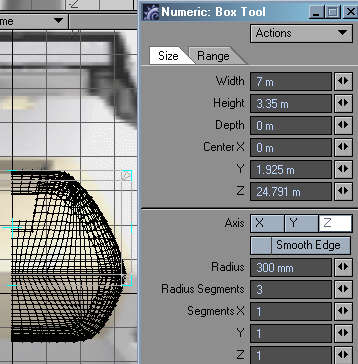 18. Select that aft bulkhead polygon (if it is not already selected), go to bevel ('b' and 'n') and in the numeric window set Inset = 0, and Shift = - .3 m ( - 300mm). Now delete the two center polygons shown here.