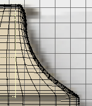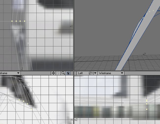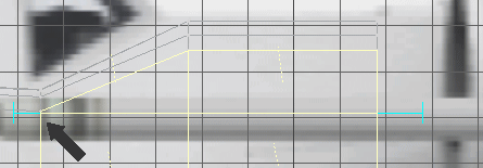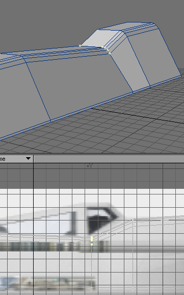 13. Now you can see the reason for the two cuts. Grab the points of the top part of the second cut, shown here, and, while holding down the Ctrl key, pull them down to conform with the sideview of the background image. Shown in the bottom pic.