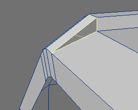 21. After cutting and pasting the now welded surfaces back to the upper fuselage layer, you will notice a small triangular space that is open. Select the three points and hit 'p' to create the small triangular polygon.