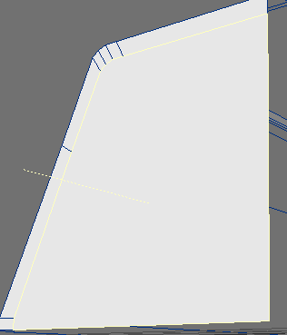 12. After the cut, extend the fuselage all the way to here, the end of the sloping portion of the fuselage - stop, hit 'e' again, and then extend the fuselage all the way straight to the end, before it folds inward and terminates.