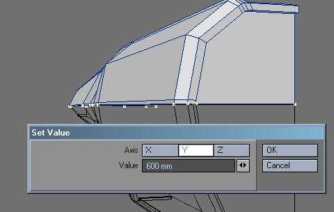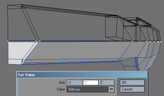 9. At this time, just to make absolutely sure everthing is aligned correctly, select all of the points along the upper edge and using Set Value Y = 600 mm, hit OK. Now we know exactly where the edge is located.