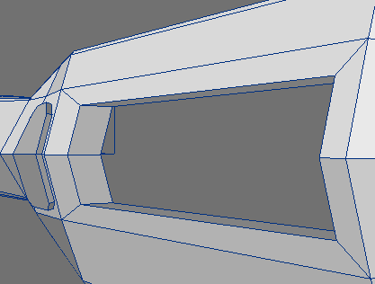 16. There is an access door on the bottom slope of the fuselage. I used Bevel to pull the polygon inward slightly. Afterward, delete the center polygon. It would create a "wall" where we don't want one, once we mirror the fuselage. Make whatever minor adjustments are necessary to clean this area up.