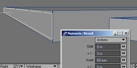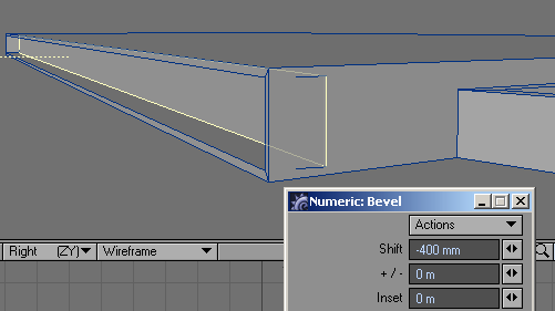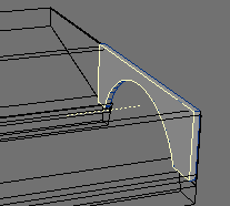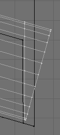 2. Since the wing edge is at an angle, the bevel will come out at an angle as well. To correct that, go to high magnification on one end, with the beveled polygon still selected, and slide it over a little. This is what you want to get. With one end corrected, the other end is done as well.