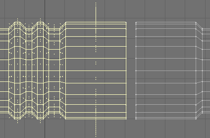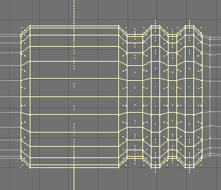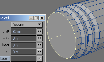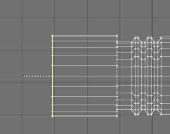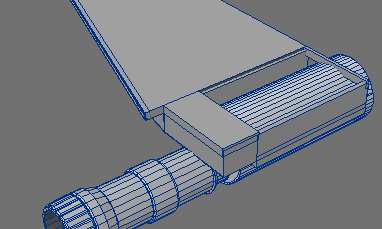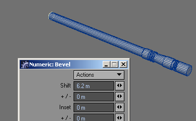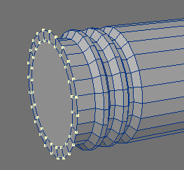 11. At this point I wanted something other than just a plain tube. I went back and grabbed one of the previously beveled parts and, in an empty layer, slid the copied polygons to the end of the tube. Merged them, and then...