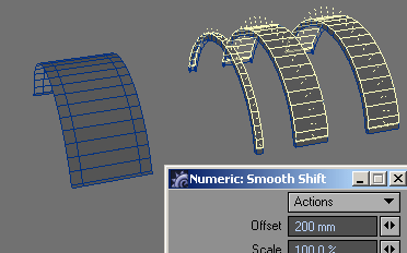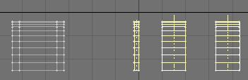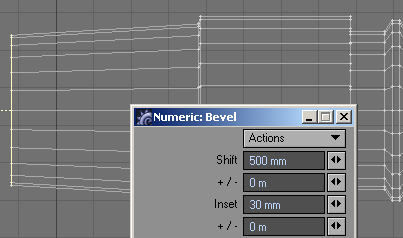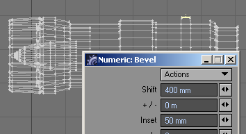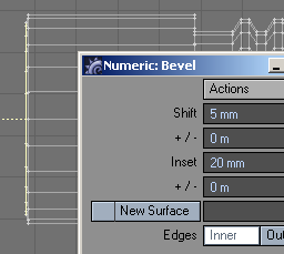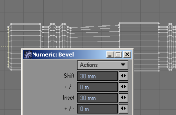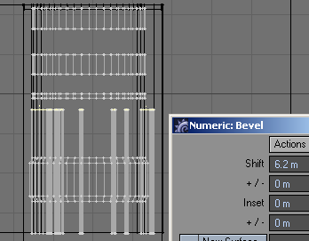 24. With all of them selected, let's bevel those things. First, slide them to one end of the box. I then added a little flange (bevel out: positive shift and a negative insert, then level, and then back down (positive shift and a positive insert), then bevel, or extend, them all the way to the end of the box.