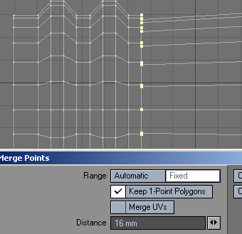 9. Here I went back to the previously beveled flanges, copied them again, stretched them a little ('h') and slid them, in an empty layer, to the front of the tube. Then I pasted it back in and did a point merge, with the fixed level wide enough to grab the points on both sides and merge them.
