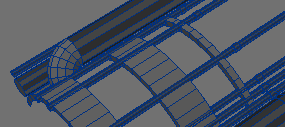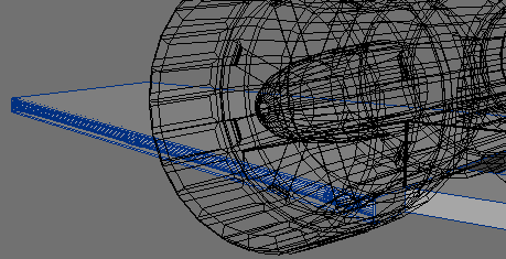 18. Go to the end of the engine without the cone and select all of the polygons. Then using the wing box as a guide, make two cuts. Subsequently, select only the polygons the will be visible in the wing box and give them a name.