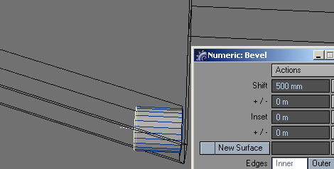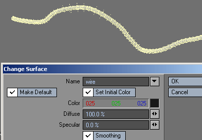 30. Hit 'q' and in the Change Surface panel, name the new polys 'wire'.