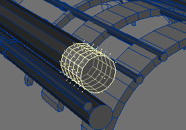 23. Now for the part we love to hate. Nurnies. I will take you through a few, but the rest is up to you. In the back profile of the engine box make a disk, and another, and another and... you get the idea. The more you make, the more interesting the object will look.