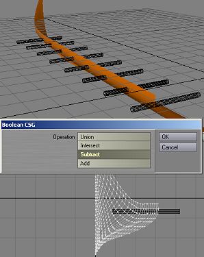 12. With the hull in the active layer and the Boolean objects in the background layer, go to MULTIPLY/Booleans or <Shift-b>, and the Boolean CSG window will open. Select "Subtract" and hit ok.