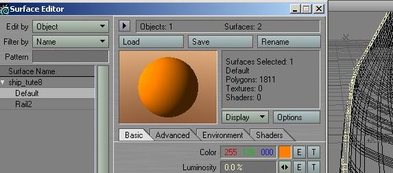 18. In the Suface Editor you now see "Rail2". Go to "Default", where our original color choice is located, right-click and a tiny window will pop up that reads "copy" and "paste". Click on copy and then go to "Rail2". Right-click and in the tiny window click on "paste". You color will now be assigned to "Rail2". Neat, eh?