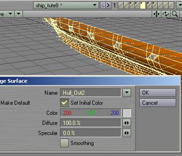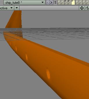 33. In layer 5 you will now have a double-sided hull, with oarports and a deck surface. Save your file as ship_tute9.lwo