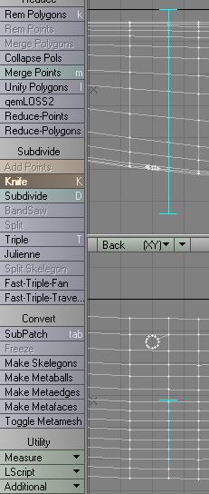 in them. Go to CONSTRUCT/Knife (Shift-k) and cut like so:
