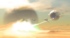 This image will link you to Truespace 4.3, the software with which all you see on this page (with exception of the Blender image) has been done, and can be purchased from the manufacturer, Caligari, for a mere $20. Click on Geoff Hoffman's image of the 'Pit Droids' to go there. I am showing you this, as well as the link to the awesome Blender, modelling and animation package, so you know that cost is not a problem here, only your desire to learn and to have a fun and a creative outlet for your talent. I personally love the intuitive Truespace software, which introduced me to the joy of 3D CG, as you can see from my own Truespace 3 & 4 gallery. Also know this, once you know one 3D package, you will understand the concepts of what 3D computer graphics (CG) and special effects (FX) are all about. Learning another software package after that, is not very difficult. |