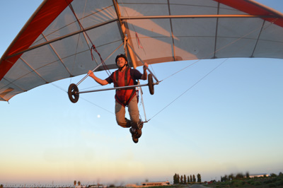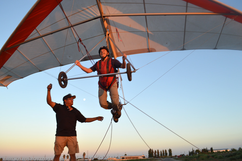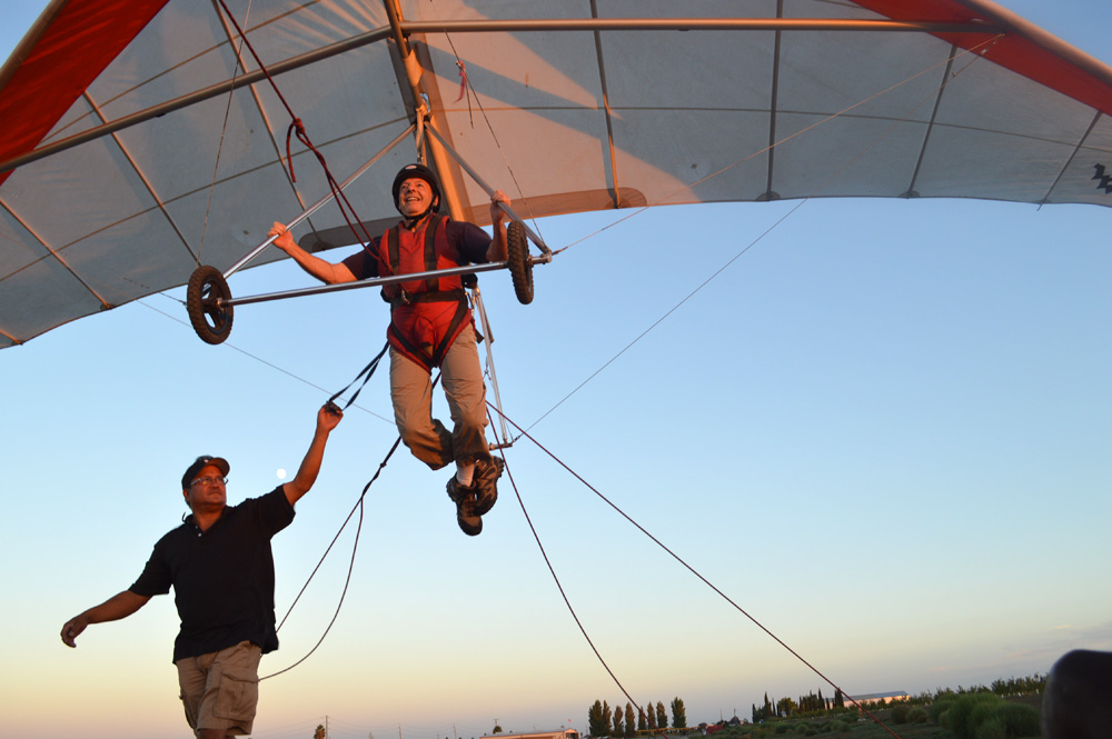 This is what the goal is. The lesson is quite different as you can see, but no less exciting. There was not one person who took it, and suddenly left the platform of the moving training Flight Deck, as the instructor called it, and found themselves flying, who did not have a wall to wall smile on their face. The instructor will, within a few lessons, get you to flying off an actual hill and then a mountain. He's been at this for over 30 years.. |