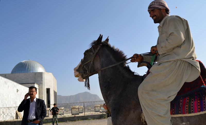 Watching the kites fly at the Teppe Maranjan, the oldest continually inhabited part of Kabul, next to the Mausoleum of Nadir Shah, was one of my intended sights for Kabul. From here steps lead downhill past more graves to the heavily damaged tomb of Sultan Mohammed Telai, Nadir Shah's great-great grandfather, visible in the next picture.. |