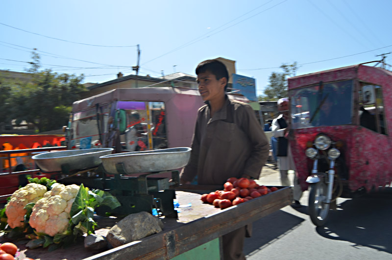 There is a long stretch of shops along the road, centered around the intersection to Bagram, where villagers come and shop. |
